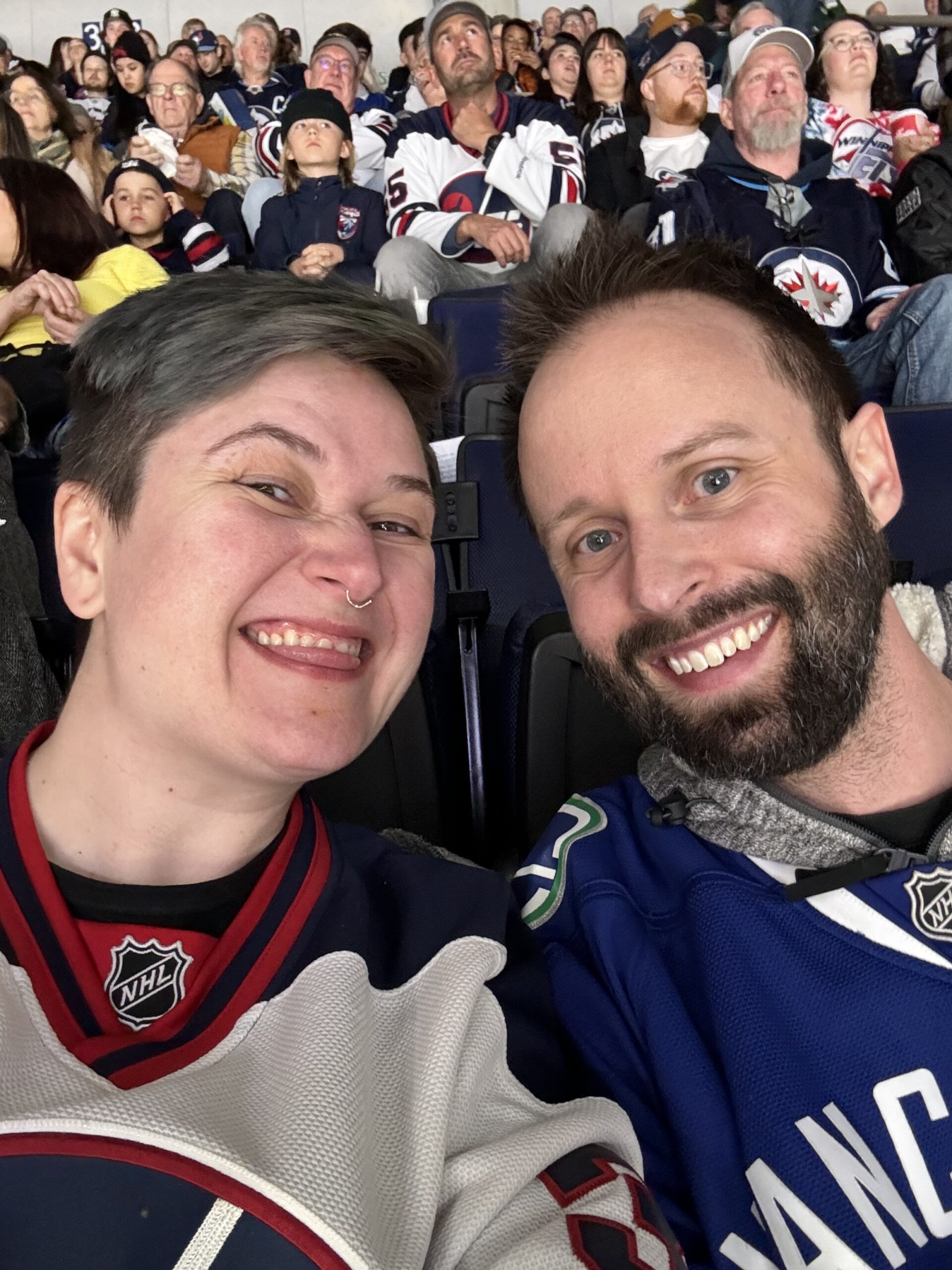 I love spending time outdoors running, camping, and hiking. I also enjoy cozy time at home with my partner, LP, and our two animals, Banjo and Edward Scissorpaws. I like going to movies and concerts, and I play Stardew Valley.